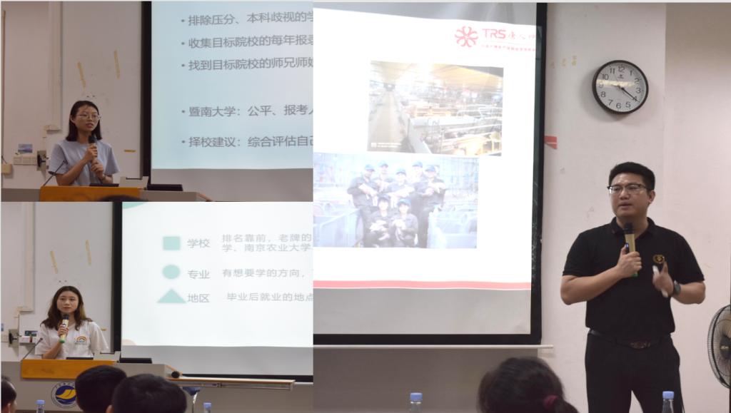 陈嘉文代表学院对唐人神团领导及同志们的莅临指导和对此次会议举办的支持,表示衷心的欢迎和感谢!并通报了学院2021届毕业生情况、考研情况,希望同学们通过会议的交流分享从中得到收益,并寄望同学们把心中所思所想融入职业规划中,以实际行动去践行自己的梦想。祝愿毕业班同学们毕业愉快,就业创业成功!同时,也希望唐人神集团进一步加强与我院的合作,共同探讨新农科人才培养模式,开展深度产学研合作,达到最大限度的互利共赢。