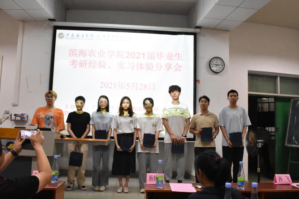 在分享会上,郭璐等5名考研成功的同学围绕备考过程中的信息收集、资料的准备、院校和导师的选择、时间安排、心理抗逆等主要方面进行了交流;吴振东等4位不同专业的同学分别就各自毕业实习过程中工作、学习、生活经历与同学们分享了他们的“苦”与“乐”和所学、所获。
