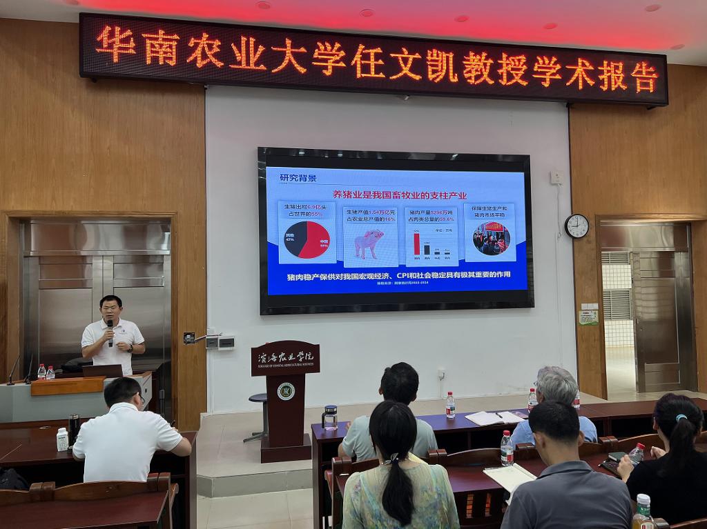 9月12日,应银河集团9873com邀请,华南农业大学任文凯教授在湖光校区兴农楼109室作了题为《猪免疫特征的氨基酸代谢基础》的学术报告。报告会由副院长刘文超教授主持,畜牧学科赵志辉教授、甘尚权教授、青年教师及研究生100余人参会。