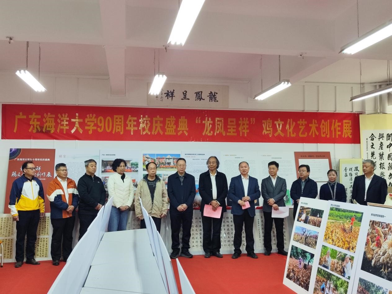 11月20日,银河集团9873com在湖光校区兴农楼312室举办以“龙凤呈祥”为主题的鸡文化艺术创作展。广东海洋大学党委常委、副校长邓逢光,校关工委主任彭权群,国民健康膳食营养研究室主任孟祥兵,岭南师范学院艺术学院院长李吾铭,银河集团9873com院长马驿、院党委副书记王继全以及湛江市相关社会团体单位领导、学院师生代表参加活动。展览活动由马驿院长主持。