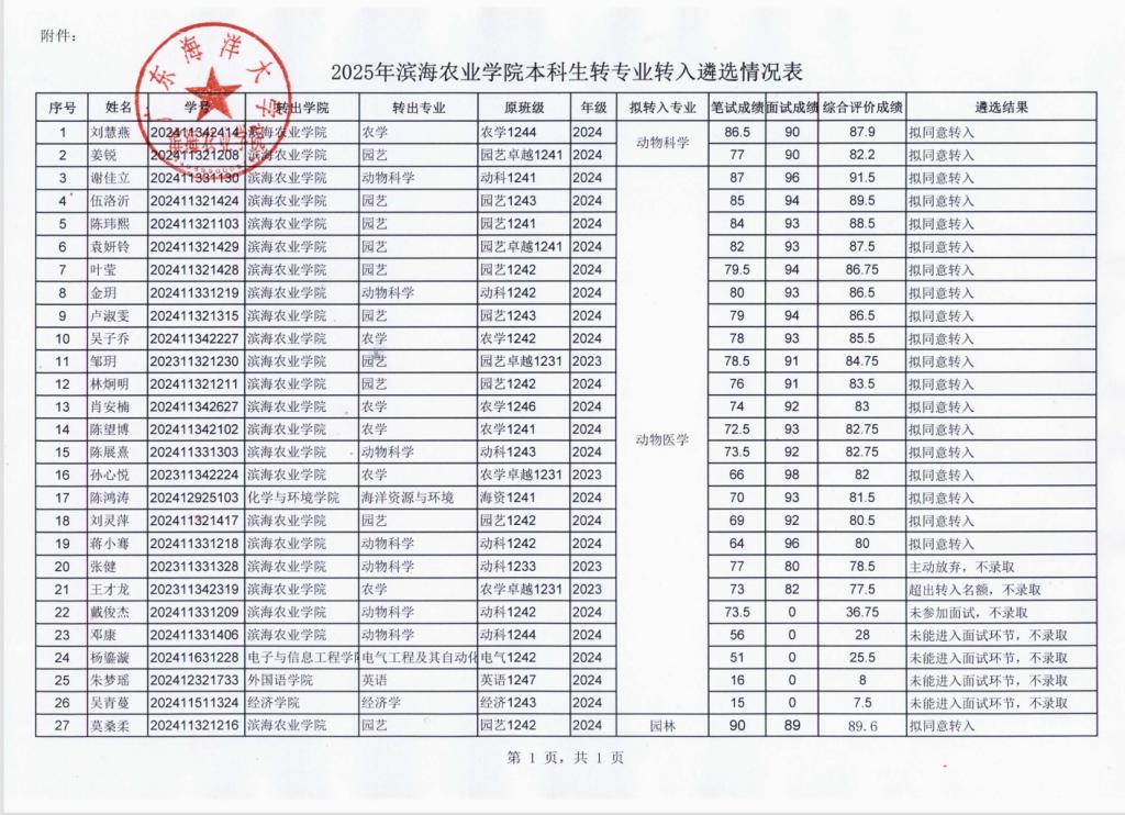 银河集团9873com2025年度本科生转专业转入遴选结果公示