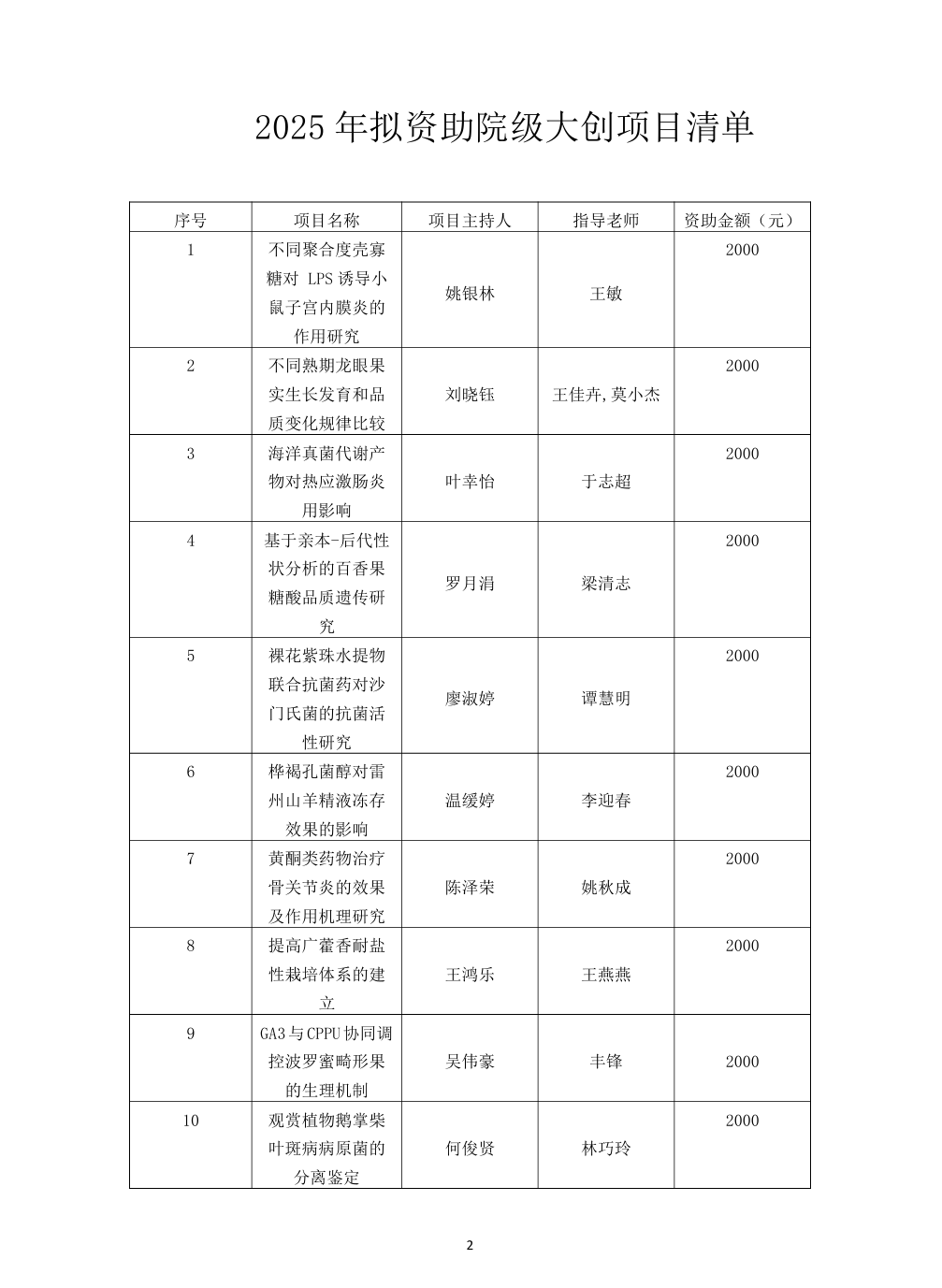 银河集团9873com2025年拟资助院级大创项目的公示