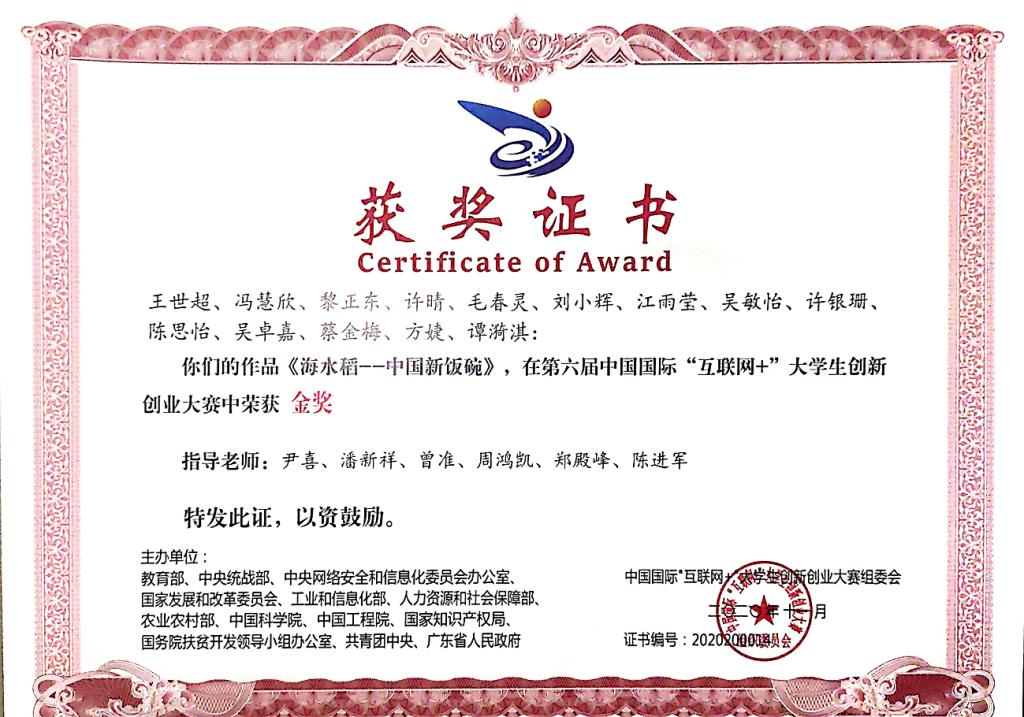 第六届中国国际“互联网+”大学生创新创业大赛全国总决赛金奖